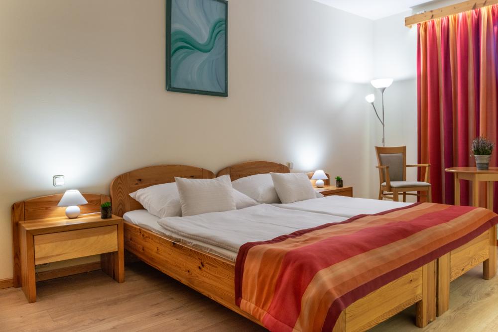 - kétágyas, franciaágyként összetolva, vagy két külön ágyas elrendezésben