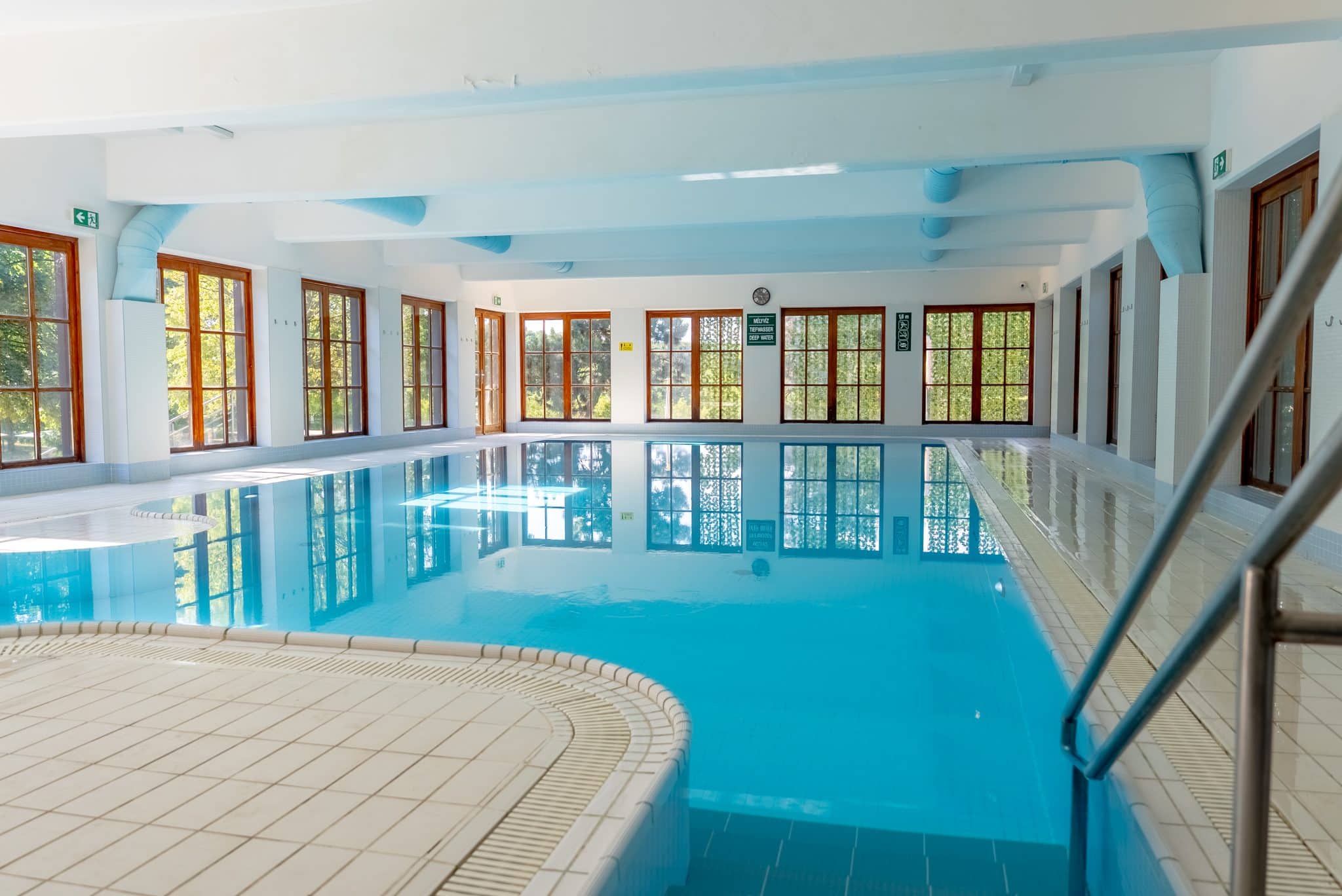 A melegebb évszakokban a beltéri medence mellett egy további kültéri medence is üzemel A legkisebbek örömére egy gyermekmedence kapott helyet. A 30-31C°-os beltéri medencében a hidegebb hónapokban is ellazulhat.